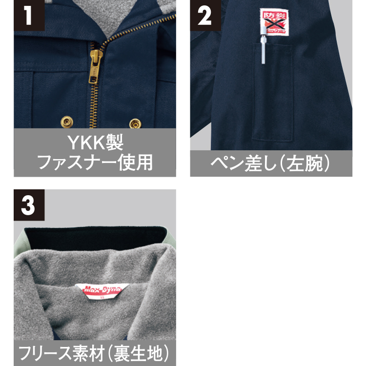 優れた防炎性により、火気を扱う作業現場において高い安全性を求める、ニーズに応える防炎製品、それが「Max Dyna」です。炎や熱に対して着火せず、炎が上がることがありません。また記事が溶融しないので、肌に付着することでおこる火傷も防ぎます。防炎機能だけでなく、軽さや丈夫さ、耐洗濯性、着心地のよさなど作業服としてのこだわりのディティールも、半世紀にわたり作業服を作り培ってきた当社ならではの、技と知恵が凝縮されています。