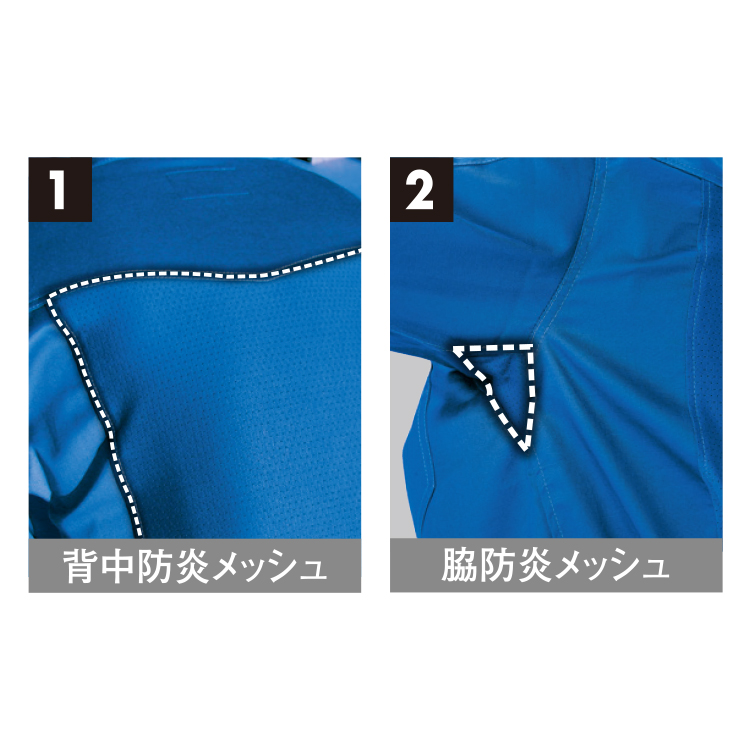 薄手の防炎素材に防炎メッシュ素材を組み合わせ、安心の防炎機能と抜群の通気性を実現しました!